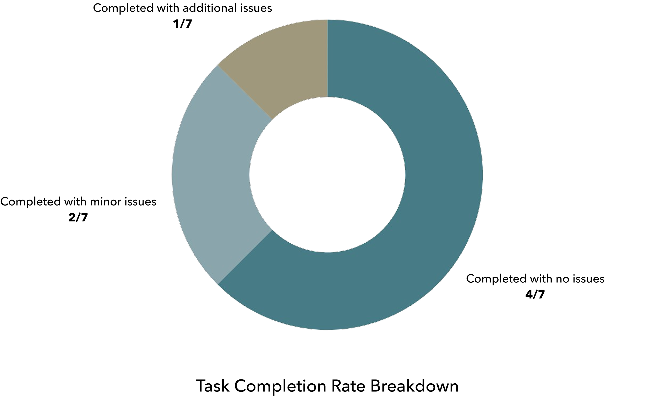 All participants successfully completed the end-to-end task flow (sign-in, add home, pool setup, and chemical profile flow), resulting in a 100% completion rate. Two users made a few extra exploratory taps before advancing at various points, and one participant attempted to access unprototyped sections despite clear instructions. Given the context, I treated the last case as an outlier.